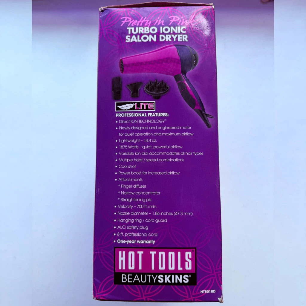 ¡Secado 50% más rápido con control total de iones! Esta Secadora Hot Tools Pretty in Pink de 1875W ofrece la potencia de un salón. Su característica clave es el Dial de Iones Variable, que te permite personalizar la tecnología iónica para máximo brillo o máximo volumen, eliminando el frizz de forma efectiva.